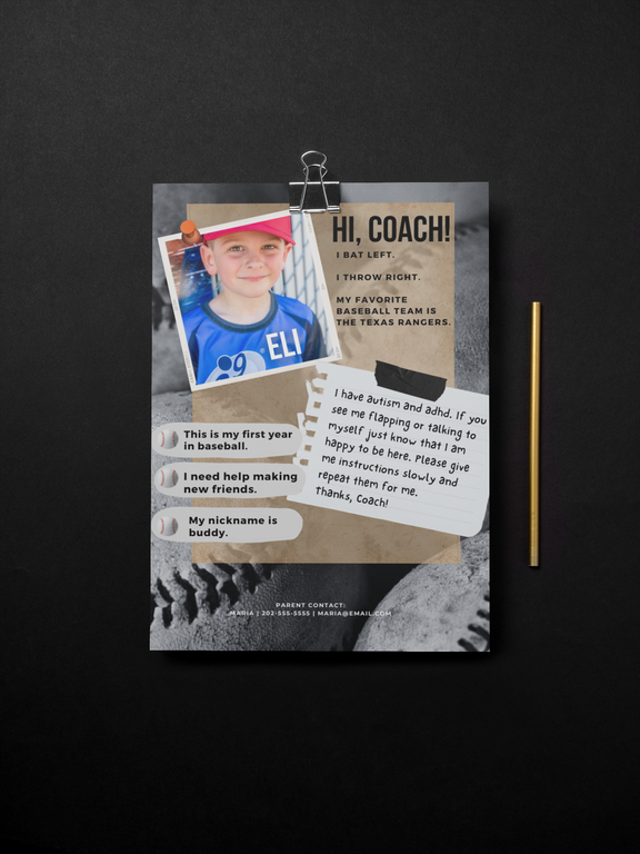 A quick and customizable way to introduce your child and their unique needs, whether it be a teacher, coach, doctor or any care provider in between. Template includes sample information to get you started written by two moms who both have children with disabilities.