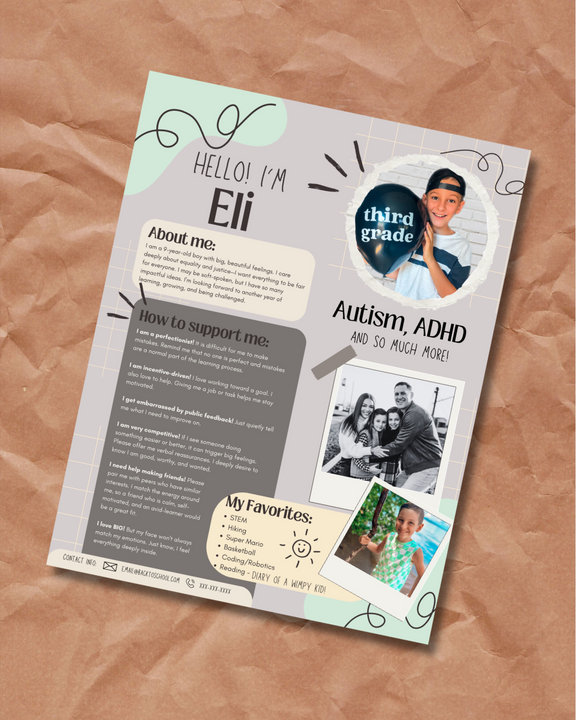 A quick and customizable way to introduce your child and their unique needs, whether it be a teacher, coach, doctor or any care provider in between. Template includes sample information to get you started written by two moms who both have children with disabilities.