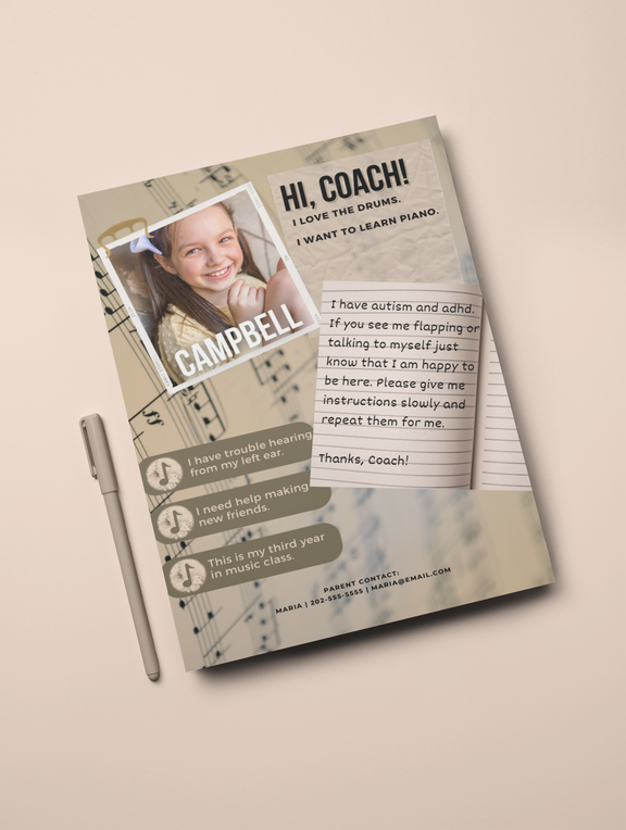 A quick and customizable way to introduce your child and their unique needs, whether it be a teacher, coach, doctor or any care provider in between. Template includes sample information to get you started written by two moms who both have children with disabilities.