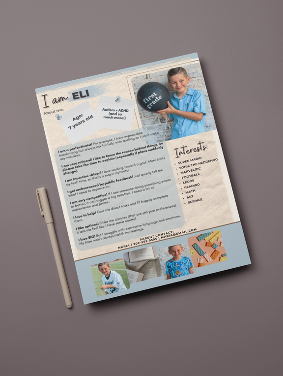 A quick and customizable way to introduce your child and their unique needs, whether it be a teacher, coach, doctor or any care provider in between. Template includes sample information to get you started written by two moms who both have children with disabilities.